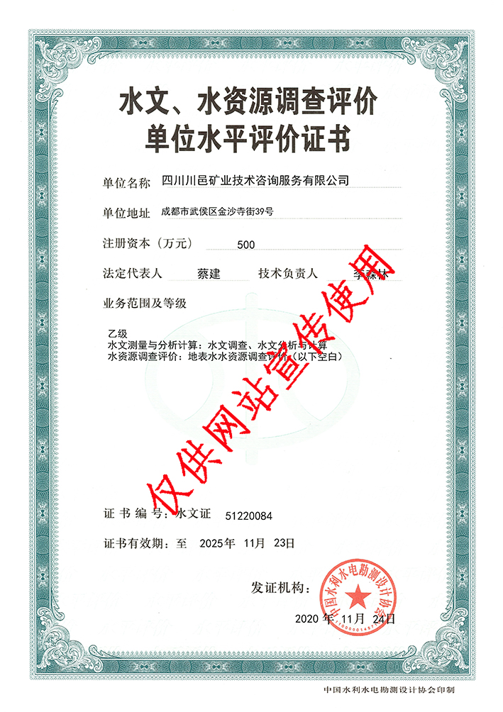水資源調(diào)查評價證書