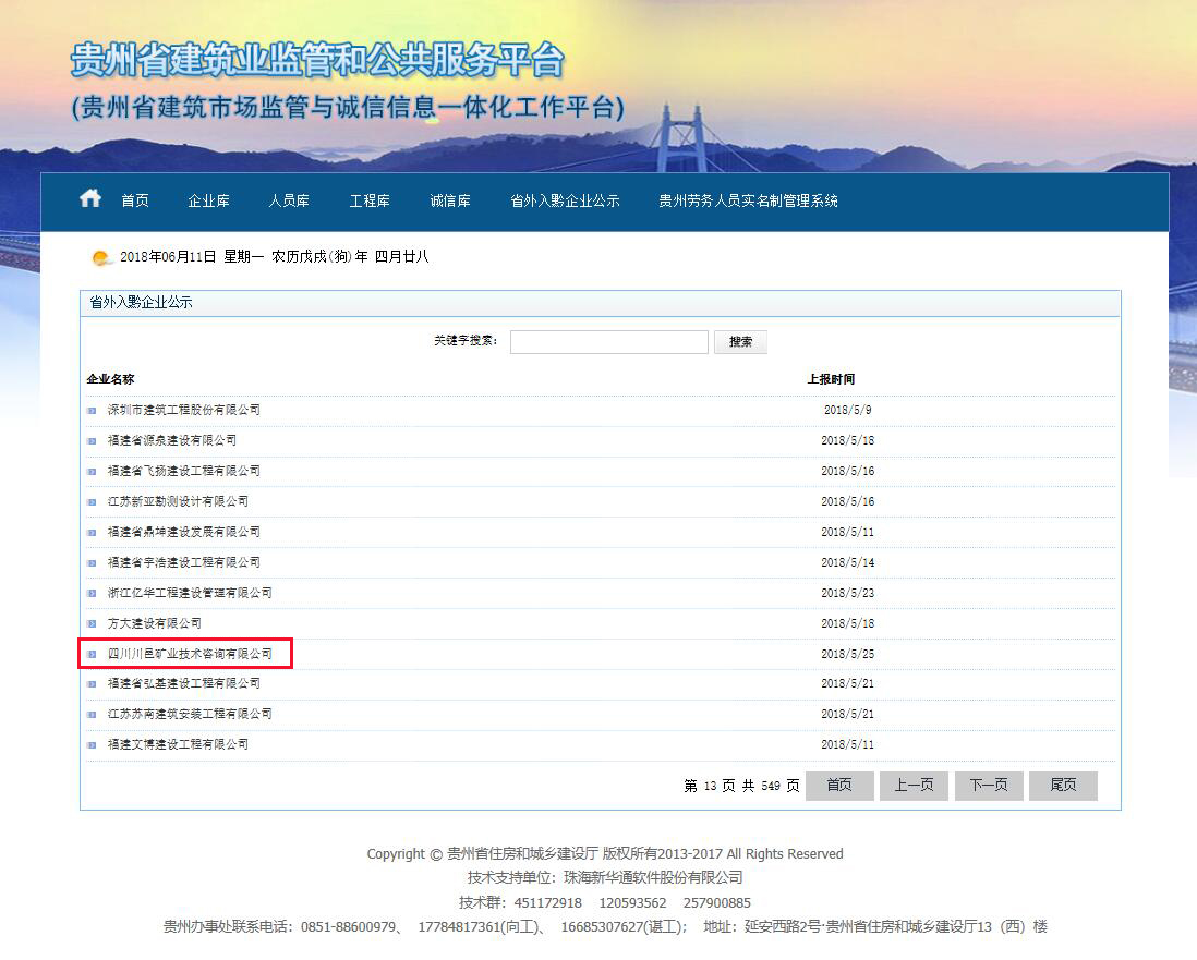 功在貴州省進(jìn)行備案,備案公示已在貴州省建筑業(yè)監(jiān)管和公共服務(wù)平臺(tái)公示。