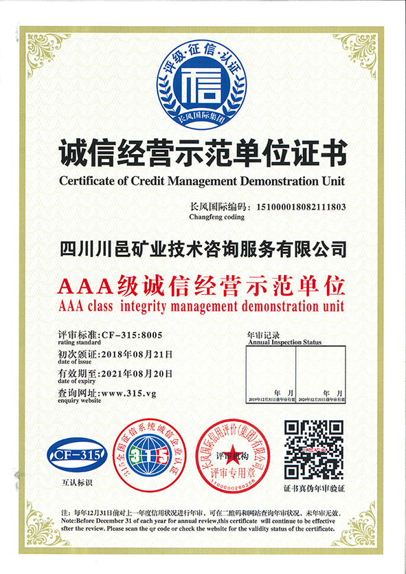 誠信經(jīng)營示范單位證書
